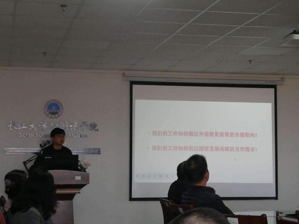 接下来,党委副书记程坤从学工视角做题为《新形势下提升外语专业人才培养质量的思考与举措》的汇报,他首先介绍学院人才培养质量现状,提出学生工作如何顺应外语教育政策的价值取向和回应国家发展战略的关切需求的思考。他提出兼容并蓄,为所当为,以教育转型、学风建设和专业提质三个方面促进学生与老师相互成就。