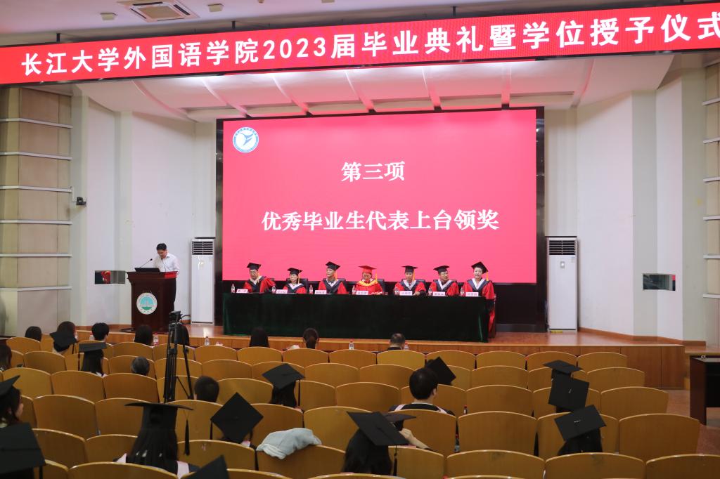 典礼在雄壮的国歌中拉开序幕。副院长彭沂宣读优秀毕业生表彰文件,学院学位委员会成员为优秀毕业生代表颁发了荣誉证书。