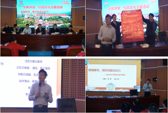 在英山一中,走访组与该校校领导、高三年级主任和部分班主任进行了座谈。程坤以“穿越高考,更好地遇见自己”为主题,在该校“毕昇讲坛”为高三年级部分师生开展了心理健康教育讲座。讲座由英山一中校长刘振武主持。随后,危煜祥在讲座现场为英山一中送上喜报,并向师生介绍英山一中考入我校学生在校发展情况。最后,刘振武校长还以优秀校友身份向同学们推荐了金年会jinnianhuicom。整场讲坛座无虚席,气氛热烈,反响良好。