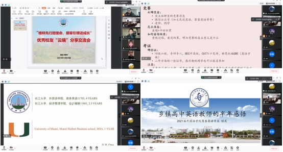 “云端”分享交流会上,毕业学长学姐代表分享了自己的考研、留学、择业经历,给出了宝贵建议。毕业于商英11702班的程苑同学分享了自己找工作的经历,建议学弟学妹们提前通过招聘网站了解自己理想工作的必备技能,提前准备、加强学习,才能及时把握住人生的机会;毕业于商英11704班的张婷婷同学建议学弟学妹们从大一起就要勤学多问,勇于参加各类学科竞赛,才能做到在竞争激烈的考研大军中脱颖而出;毕业于商英11703班的高原同学从本科成绩、英语能力、院校背景、材料写作、实习及奖项这五个方面详细介绍了出国留学的准备流程,也分享了疫情时代她在美国迈阿密大学的生活和学习情况。低年级的同学们认真聆听已经毕业的学长学姐们的经验与教训,踊跃提出心中的疑问与困惑,毕业学长学姐们也一一耐心作答。