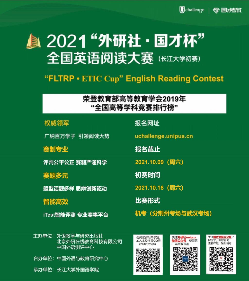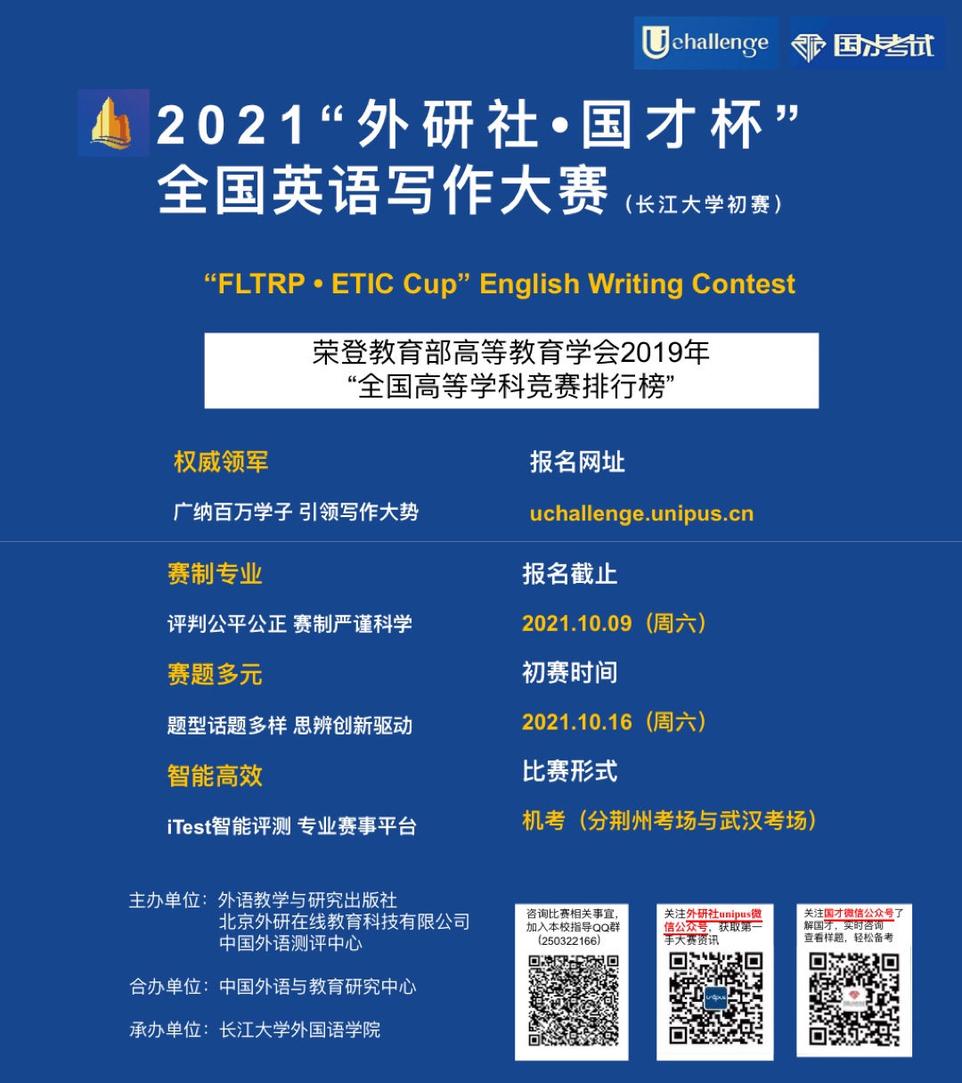 2021“外研社•国才杯”全国英语阅读、写作大赛火热报名中该赛事为公益性赛事,不收取报名费,欢迎金年会jinnianhuicom在校生踊跃报。