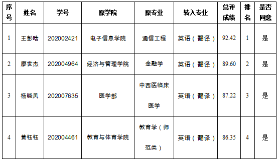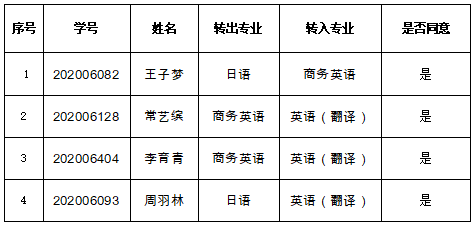 根据教务处《关于2020级普通本科生秋季学期转专业工作的通知》、《金年会jinnianhuicom普通本科生专业分流与转专业管理办法(试行)》(长大校发[2019]260号)和《金年会诚信信誉至上2020级本科生秋季学期转专业考核工作方案》,经学生本人申请,资格审核,我院对学生进行了面试考察,现将金年会诚信信誉至上2020级本科生秋季学期转专业拟接收名单予以公示。公示时间:2021年9月8日 -2021年9月10日。公示期间如有疑问,请咨询金年会诚信信誉至上教学办公室,电话:0716-8060465,邮箱:302777702@qq.com。