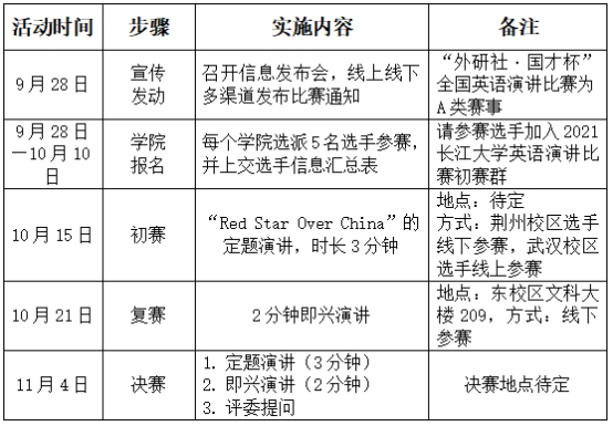 为营造良好的英语学习氛围,丰富校园文化生活,同时,为选拔优秀选手参加2021年“外研社·国才杯”全国英语演讲比赛,特举办此次活动。具体通知如下: