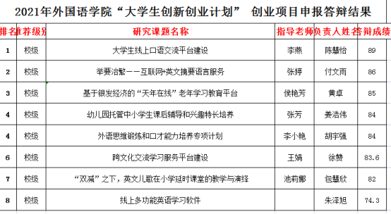 根据《关于我校第十四批“大学生创新创业训练”项目申报的通知》要求,经项目团队申报、学院组织专家对项目申报材料从项目可实施性、实施对象明确性、实施方案具体性等方面进行审议推荐以下项目为第十四批“大学生创新创业训练计划”立项项目(名单见附表)。