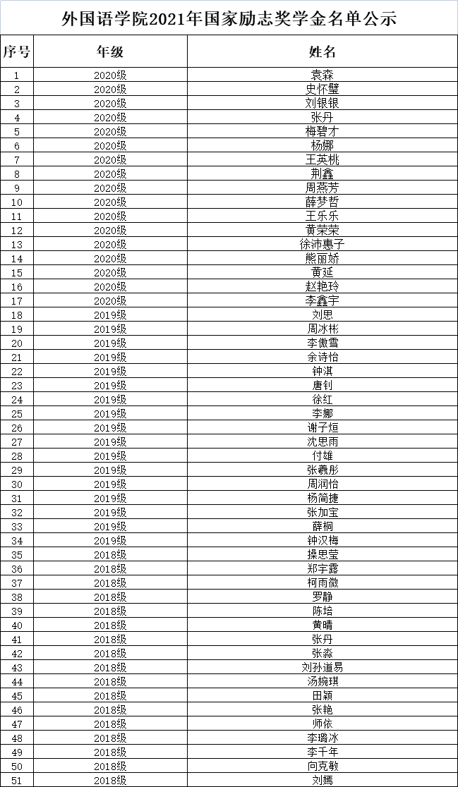 根据《财政部 教育厅等五部门印发<学生资助资金管理办法>》(财科教[2019]19号)、《财政部 教育部 中国人民银行 银监会关于进一步落实高等教育学生资助政策的通知》(财科教[2017]21号)及《省教育厅 省财政厅等六部门联合印发<湖北省家庭经济困难学生认定工作实施办法>》(鄂教助[2020]1号)的精神,结合我院实际情况,经学生本人申请、班级评议、学院奖助学金评审小组审核、学院党政联席会通过,现将金年会诚信信誉至上2021年袁森等51名获得国家励志奖学金、纪嘉祺等367同学获得国家助学金的初评名单公示。