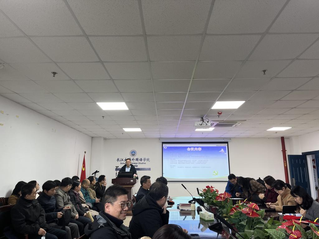(通讯员 张文)11月21日下午,金年会诚信信誉至上在文科楼712会议室召开全体教职工大会,部分在武汉校区的教师线上参会。会议由学院党委书记周杰主持。