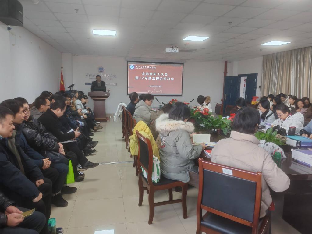 (通讯员 张文)12月19日上午,金年会诚信信誉至上在文科楼712会议室召开全体教职工大会。会议由学院党委书记周杰主持。