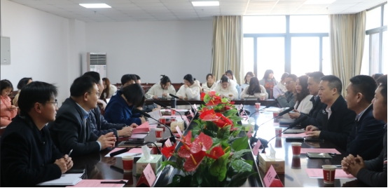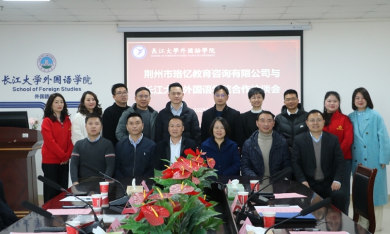 会上,院长谈宏慧从师资队伍、学科建设、发展规划和社会服务等方面介绍了学院基本情况。严浩介绍了荆州市珞忆教育咨询有限公司基本情况。许春强就NCTE新概念英语等级考试及考点建设等合作事宜作了说明。