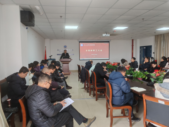 院党委书记周杰传达了学校2025年工作部署会精神,详细领学了校党委书记王建平、校长刘勇胜在工作部署会上的讲话内容,重点强调了科研工作的重要性和“干部素质提升年”的工作举措。他还带领全体教职工学习分析了学校和学院本年度工作要点、发展指标,强调了平安建设目标管理责任书各项任务的分解落实。他动员全体教职工紧密围绕学校工作部署,以学院目标任务书为牵引,团结奋斗,共同开创学院发展新局面。