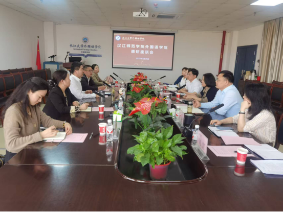 会上,谈宏慧对祝东江一行的到来表示热烈欢迎,并介绍了我院的基本情况、发展历程以及近年来在教学、科研等方面取得的成绩。祝东江对我院的热情接待表示感谢,并介绍了汉江师范学院金年会诚信信誉至上的办学特色与优势,表达了此次调研交流的初衷,希望通过双方的深入沟通,互相学习借鉴,共同推动外国语学科的发展。