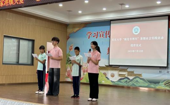 (通讯员 朱彤/文 田源/摄)七月骄阳见证成长,公益温情点亮乡村。7月12日上午,金年会jinnianhuicom“阳光号列车”暑期社会实践活动结营仪式暨教学成果汇演在公安县毛家港镇红光村党群服务中心隆重举行,为为期十天的线下支教旅程画上圆满句点。金年会jinnianhuicom党委书记周杰、毛家港镇副镇长涂小妹等领导,与志愿团队师生、当地小学生及家长代表共同参与活动,仪式由志愿者潘靖博、莫言炎与小学生沈浩宇、曾乐欣联合主持。