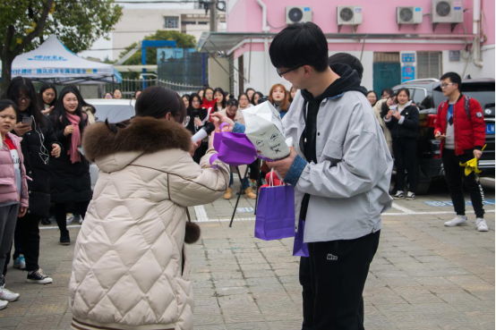 在给男老师们赠送礼物后,我院学生会各女生部长、各班女生代表也向男生部长、各班男生们献上了花束,表示了祝福,她们感谢男生们无怨无悔的付出,希望他们再接再厉、学有所成,并且找到属于自己的幸福。现场气氛愉悦而热烈。收到礼物的男生们既感到惊讶,又感到十分开心。
