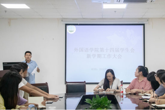(摄/袁缘 文/钱彦霏)为了做好迎新工作,完成部门成员之间的工作对接,91日下午4点,我院学生会于文科大楼712室召开新学期工作大会。参加本次会议的有学生会主席团成员和各部门副部,还有院团委书记杜岳青老师、学工办童超老师、车桥老师,以及新来的几位辅导员老师也莅临现场。