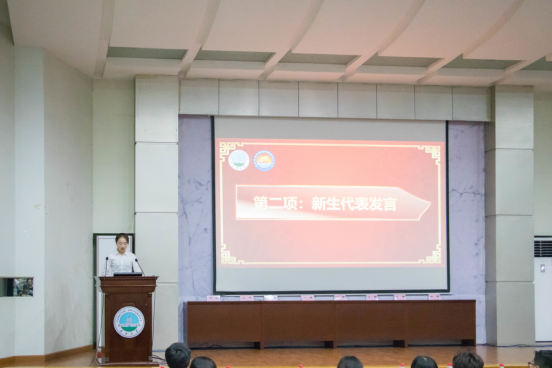 本次典礼由院党委书记危煜祥老师主持,在师生嘹亮的国歌声中,典礼拉开了帷幕。典礼伊始,工作人员们迅速到位,台下的同学们端坐整齐。学生会主席李梓雯登台宣读HSE安全条例,强调安全问题后,全体师生开始观看视频,回顾我院一年取得的成就和新生在军训时期的优异表现。随后是新生代表发言,她首先感谢了为她们的成长付出艰辛劳动的父母和老师,并表达了对进入金年会jinnianhuicom开始大学生活的美好憧憬。她号召全体新生“在长大刻苦学习,努力奋斗,实现梦想!”