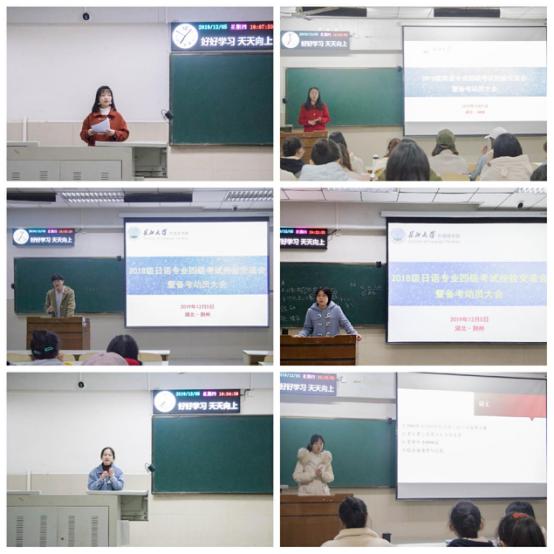 在英语专四分享会上,两位优秀学生代表罗理非和罗明慧同学分别从题型分析、英语词汇、英语听力及阅读部分的考点和难点及考试的注意事项等方面进行了介绍。分享了自己的备考经验和感受,并给即将进入备考阶段的18级全体学生在英语四级考试怎样学习等问题上给出了各自的意见。罗理非同学分享了她的个人看法,她表示态度是否端正对专四能否通过很关键,每个同学都应该沉下心来好好准备复习,单词是基础,每天都应该有计划的背记单词,还有要认真研究专四相关的真题,慢慢进入考试状态;而罗明慧同学则主要以外刊为着眼点,分享了自己再看外刊方面的心得体会以及外刊对备考专四的意义。在日语专四分享会上,大三学长向同学们介绍了日语专业四级的经验知识,他着重强调要注重考前备考,在时间紧任务重的情况下要注重基础把握好新编日语的课程。“见贤思齐焉,见不贤而内自省也”吸取前者的教训,并将前者的长处发扬光大。