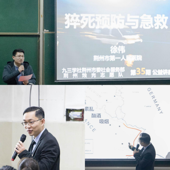 主讲人徐老师以《追我吧》节目参与嘉宾高以翔猝死事件引入,阐释猝死的原因和死亡率高突发性强等特点。他为同学们详细解答了猝死的基本概念,并讲解了猝死病因、猝死的诱发因素、如何预防以及心肺复苏等急救方法的多个模块,结合猝死的案例、图片,通过与学生现场互动的形式,生动形象地带大家了解了猝死的病因及预防措施,引起了大家对规律作息、健康生活的重视。徐伟老师还指出科学饮食和适量运动是预防猝死的绝佳方法,并亲自模拟突发现场,帮助大家更好地了解相关知识,促进我院学生对猝死的深入了解,推动了面对突发医疗状况时正确应对措施的学习。就如何预防猝死,他提出“要适量运动锻炼,科学饮食避免三高。”,他还向同学们提出了几点建议:合理睡眠;保持良好心态;不乱服药物。
