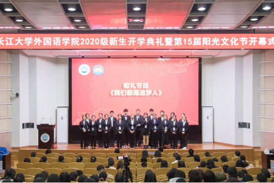 开学典礼在庄严的国歌中拉开帷幕。首先,院长谈宏慧教授致辞。谈教授代表全院师生员工,对新同学的到来表示热烈的欢迎。她希望大家在大学四年的学习生活后能够拥有健全人格,专业素养,国际视野和家国情怀,经历长大新的变化,感受外院更好的风华,成为更好的自己。谈教授在讲话中说道:“成为更好的自己,需要涵养性情,陶冶情操,提升人生品格;需要发现美,感受美,欣赏美,放大美,内化美。希望大家感受欣赏长大的美,外院的美,培养美的素养,塑造美的心灵,与美同伴,向美而行。”她寄语20级新生们,鼓励大家发现自然之美,读书之美,人性之美,荆州之美,学校之美,以美丽心灵创造美好未来,让青春在讲情怀、有贡献中熠熠生辉。