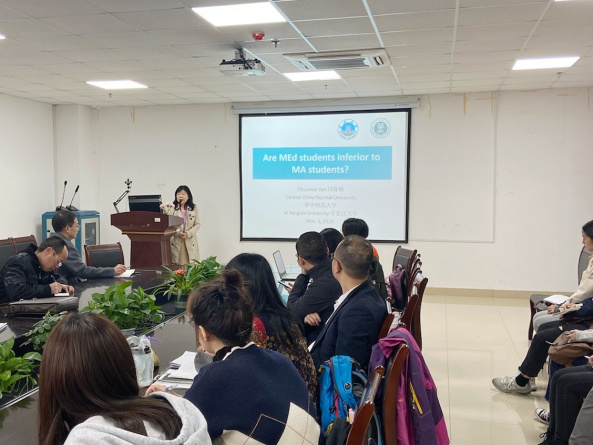 2020年11月5日下午,应金年会jinnianhuicom邀请,华中师范大学博士生导师闫春梅教授在文科楼712会议室,为我院师生作了以“学科英语教育硕士的现状与发展”为主题的学术讲座,金年会诚信信誉至上老师和全体学科英语专业研究生均参加了此次讲座,现场反响热烈。