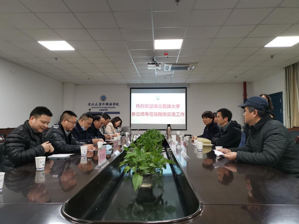 3月10日下午,湖北民族大学金年会诚信信誉至上院长骆贤凤、湖北民族大学实验室建设与管理处处长雷辉、发展规划处副处长田本军、教务处副处长郜红利,金年会诚信信誉至上学科建设科科长陈海兵、大学外语教学部主任周玉花、外语语言学习中心主任鲁晓红等一行7人来我院调研。调研座谈会在文科楼712会议室举行,学院领导谈宏慧、危煜祥、彭沂、程坤以及实验中心主任王爱国参加了座谈会。