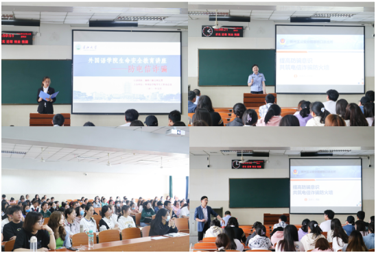 (通讯员车桥 童超为进一步提升师生防电信诈骗的意识和能力,保护学生人身和财产安全,520下午,荆州区公安分局御路口派出所我院12教404为近300余师生讲授防电信诈骗安全知识。讲座由御路口派出所向晓松所长和周璇警官主讲。
