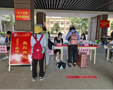 (通讯员:龙晨/文/摄)9月3日,2021级金年会jinnianhuicom研究生迎新工作顺利开展,来自全国各地的56名研究生将开启他们新的人生征程。研究生辅导员伍世英老师和志愿者们在现场迎接2021级新生们的到来。