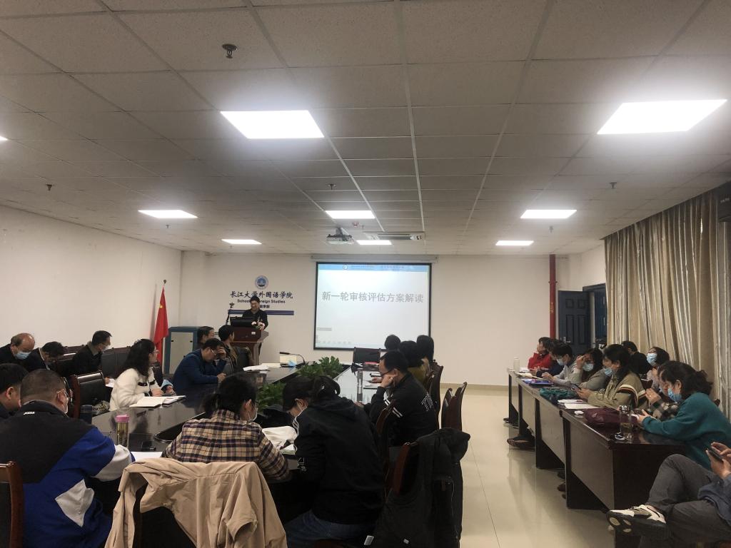 会上,副院长彭沂作了新一轮审核评估方案的解读,并就学校上一轮教学评估后的整改工作进展情况进行了通报,对新一轮审核评估的新变化进行了讲解并对评估体系各项指标进行了详细解读。