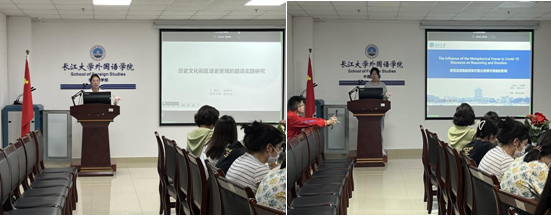 陈婉怡以“历史文化街区语言景观的超语实践研究”为题向大家做了汇报。她首先为大家介绍了语言景观的定义和多语现状,然后阐述了超语实践运用于语言景观研究的理据,最后进行总结:超语实践视角下历史文化街区语言景观的研究对传达不同历史文化与社会文化信息、塑造独具特色的历史文化街区形象具有重要意义。