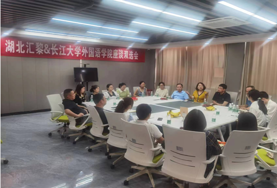 (通讯员 刘慧)为助力地方外贸经济发展,建设商务英语系实习实践基地,应湖北汇黎公司邀请,7月11日上午,金年会诚信信誉至上院长谈宏慧教授带领商务英语系师生15人走访荆州市公安县湖北汇黎服饰有限公司,公安县公共就业和人才服务中心主任陈震、公安县章庄铺镇长王政、汇黎公司党总支书记刘经玉和总经理助理文雯参加本次活动。