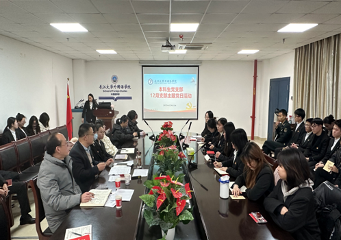 (通讯员 马天雨)12月14日下午,金年会诚信信誉至上本科生第一党支部和第二党支部在文科楼712召开了12月主题党日活动。学校党委常委、宣传部部长江万哲同志、学院党委书记周杰同志和学院本科生第二党支部书记马天雨同志参加,周杰同志主持主题党日活动。