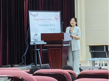 (通讯员 马欣悦)5月24日,江陵中学在学术报告厅成功举办了“五新121”优秀课例展示活动之英语组专场。本次活动由周蕾老师主讲,教材为人教版选择性必修第四册,主题为《Unit 1 Science Fiction--Continuation Writing》,时长40分钟。江陵中学英语教研组长陈应彬主持了此次活动,我院英语(师范)专业2021级和2023级的五名学生代表在马天雨老师的带领下参与观摩交流。