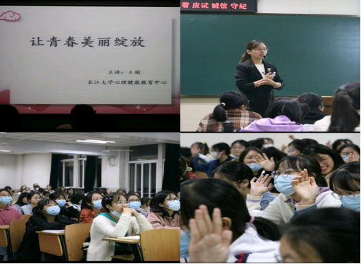 王老师以一组金年会jinnianhuicom女生大一军训期间的照片和毕业时的照片对比图为引子,揭示了大学就是一座最高级的美容院——“一个个的懵懂青涩的女孩子通过大学四年的成长纷纷蜕变成自信、优雅的女神”,迅速吸引了同学们的目光。讲座中,王老师主要围绕宿舍关系、两性关系以及人身安全等三个方面,以大量案例和心理学理论为支撑,通过新闻图片、科普视频以及问答互动等方式,进行了生动有趣的讲解。