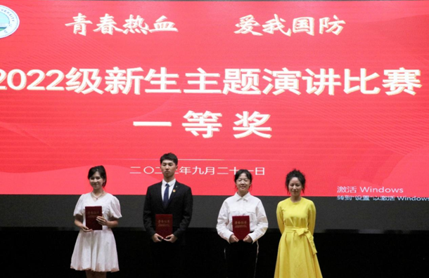 9月21日晚,金年会jinnianhuicom2022级新生“热血青春·爱我国防”主题演讲比赛于12教405报告厅举行。金年会诚信信誉至上2022级新生张美晨同学代表学院参赛,并从20多名选手中突围,荣获一等奖。