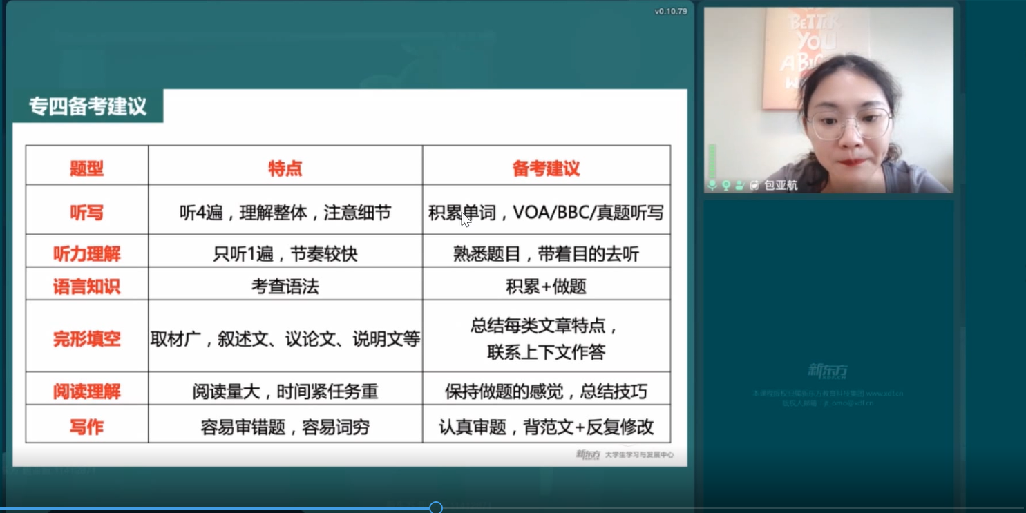 为进一步加强大学生职业生涯规划能力,金年会诚信信誉至上于9月29日下午举办“大学生职业生涯规划”讲座,讲座以线上直播的形式进行。本次讲座由新东方老师担任主讲人,金年会诚信信誉至上2022级全体新生和部分21级学生参加。本次讲座是我院入学教育中“学业(职业)启蒙与规划教育(学在外院)”中的重要安排之一。