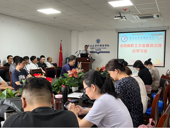 (通讯员 肖娜芸)7月1日下午,金年会诚信信誉至上在文科楼712会议室召开全院教职工大会暨政治理论集中学习会。会议采用线上线下相结合的方式进行,学院全体教职工参加了此次会议。