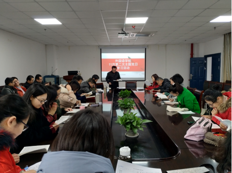 11月28日下午,学院在文科楼712会议室开展 “支部主题党日”活动。活动由教工综合支部书记段友国和公外一支部书记马春花同志共同主持,两个教工支部的全体党员共同参加。