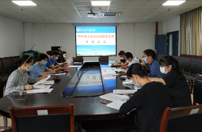 6月9日上午,学院召开党委会,专题研究2020年上半年意识形态工作。会议由党委书记危煜祥主持,党委委员、院长谈宏慧,党委副书记魏红洁,党委委员、副院长彭沂,党委委员段友国、马春花、杜岳青参加了会议,副院长谢家成、学工办主任童超、院办副主任伍世英列席会议。