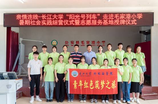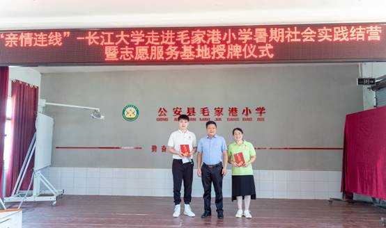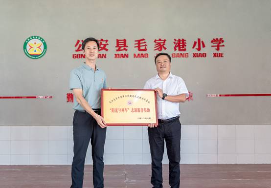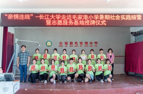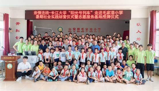 (通讯员:许泽琼、赵宇杰、吴晨宇)近日,金年会诚信信誉至上“阳光号列车”暑期支教活动在公安县毛家港小学圆满收官,并举行了暑期社会实践结营仪式暨志愿服务基地授牌仪式。共青团荆州市委副书记谭亮魁、公安县委宣传部副部长张俊以及金年会诚信信誉至上、公安县毛家港小学主要负责人等出席,19名志愿者和120余名小学生参加了仪式。