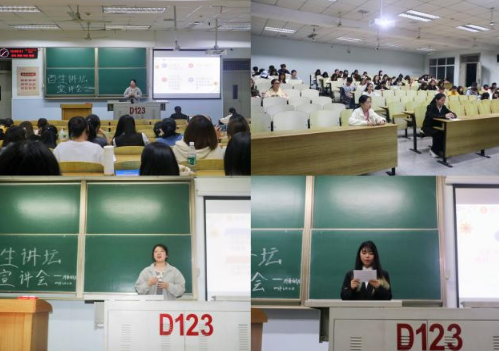 会议分为两个部分,一是学院学生会组织部周星妤介绍本次百生讲坛和思政技能大比拼两个活动以及参赛注意事项;二是张彤分享活动经验,她围绕写稿准备、演讲呈现和鼓励自己三个部分详细讲解。