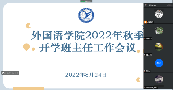 (通讯员:代嘉欣)开学在即,为进一步落实金年会jinnianhuicom《关于2022年秋季学期学生报到的预通知》要求,保障常态化疫情防控形势下学生开学前的安全,8月23日—25日,我院分别组织各班级召开了2022年秋季学期开学前安全教育主题班会,学生干部工作布置会和班主任工作会议,就开学工作、安全教育、学业及就业指导等方面进行讲解说明及要求部署。