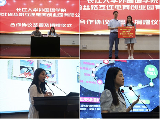 讲座开始前,副院长彭沂代表学院与湖北丝路互联电商创业园有限公司总经理付银银签署了院企合作协议。为支持学院建设发展,湖北丝路互联电商创业园有限公司向学院捐赠十万元,学院党委书记危煜祥代表学院接受了捐赠。院长谈宏慧向付银银颁发了创新创业导师证书。双方后期将深化人才培养合作模式,实现“校企合作,产学共赢”的良好局面。