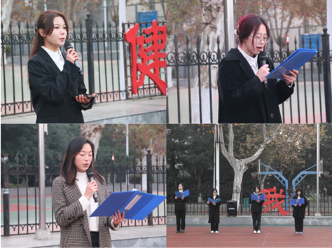 升旗仪式第三项是金年会诚信信誉至上教师代表何稳老师发表国旗下的讲话。何老师激励外院学子要时刻保持对祖国的热爱和感恩之情,勇于担当使命,为实现国家富强、民族振兴的伟大事业贡献自己的青春力量,彰显出勇于前行、不向风险困难低头的精神。随后由学生党员进行宪法晨读活动,增强外院学子的法治意识。升旗仪式最后,主持人宣布升旗仪式结束,同学们也开始健康跑起来。