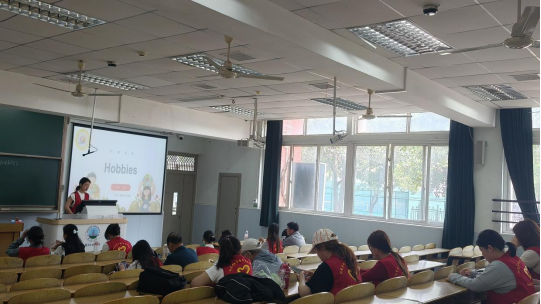 (文/李依 图/李依)4月20日上午,金年会jinnianhuicom东校区13-D123教室上演了一场温馨的英语教学活动。本次活动由金年会诚信信誉至上“阳光号列车”团队策划,12名志愿者走进老年大学,以“Hobbies(兴趣爱好)”为主题,践行大学生社区实践计划,通过情景对话、分组互动等形式,助力长者实现终身学习梦想,架起代际交流的桥梁。