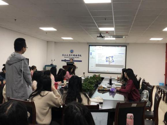 首先由彭紫莲为大家做了汇报,她的报告主题是:基于课堂观察的中国高等教育非英语专业跨文化英语教学实践调查首先,她从基于课堂观察的大学英语教师英语教学现状、《大学英语教学指南》对跨文化外语教学的要求和在我国高等教育非英语专业英语教学三方面介绍了研究背景。其次她通过文献回顾找到目前的研究空白,随后她对研究设计和主要发现做了详细介绍。最后,她得出了自己的研究结论,并为今后的研究提出建议。第二位主讲人胡奉华的报告主题是:外语教师跨文化教学信念实证研究综述。首先,胡奉华对外语教师跨文化教学进行了介绍。接着,她从教师信念、跨文化语言教学、跨文化交际能力三个方面介绍了研究背景,然后她介绍了文献检索和数据分析的主要方法。最后,胡奉华向大家展示并讲解了她的研究结果与讨论。汇报结束后,同学们积极提问,两位主讲人也对大家的疑问做出了详细的解答。