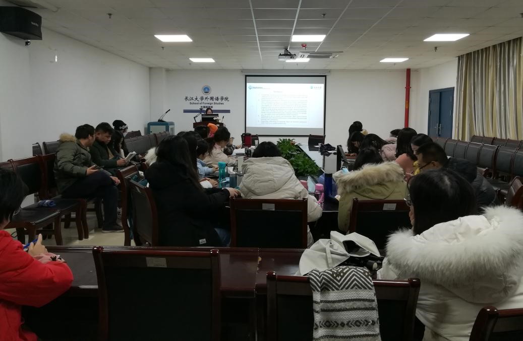 首先,由刘小恋为大家做了主题为搭配习得中的认知分析的汇报。她先为大家介绍了搭配习得认知分析领域的研究背景,包括:固定搭配的定义和使用;固定搭配的学习;相关教材和书籍的发展;主要学者运用不同的方法对搭配所下的定义等。接着,在文献综述的部分她经过文献分析总结出:搭配的规律是随意的是有迹可循的。然后她提出目前的研究方法,主要是从词典和教材中获得研究材料然后进行分析。同时她举出两个例子:“take/have/make/do a trip”,“powerful car/strong car”。在语料的分析上,她提出一系列策略,包括:对比相似的搭配;通过与母语语言搭配的比较找出两种语言搭配不同的原因;对语料的来源进行筛选;根据语义对语料进行整理等。最后得出将认知分析运用到搭配教学中将有利于学生学习固定搭配。第二位主讲人王柳的报告主题是:注意力对二语习得的差别效应。首先,王柳对这一领域的背景进行简要介绍,包括搭配的定义以及达到母语学习者对搭配的掌握程度所遇到的困难等。接着,她介绍了此研究的目的和意义。最后,她指出在实验部分,这项研究一共设置了四种条件,其中阅读文章后回答问题并举出反例最有利于学习者掌握搭配。