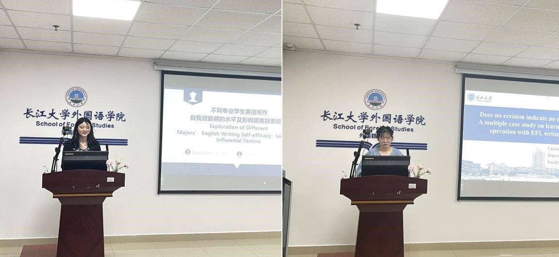 随后,杨陈妤同学通过分析几个学生的不修改行为和不修改心理,为大家带来了主题为“不修改等于不投入--外语写作学习者书面反馈不修改行为的多个个案研究”的汇报。
