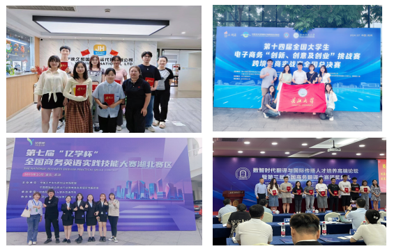 【升学就业】:商务英语专业与职业契合度高,就业路径广;专业服务聚焦江汉平原三农及制造业、能源产业,服务地方经济,区域优势突出,注重学生实践能力培养,基于体验学习的校内外实践协同育人有保障。(1)创新创业强实操。学生参加大创项目26项,其中国家级1项,省级4项;(2)学科竞赛促能力。获“外研社杯”理解当代中国全国大学生外语能力大赛英语演讲赛及全国大学生电子商务三创赛等国家级及省级学科竞赛奖项43项,获国家级荣誉称号6人次。(3)职业认证促发展。近三年本科生116人获得国际人才考试(ETIC)资格认证,149人获得阿里巴巴《国际站操盘官》和《国际商务师》等职业资格证书。2019级起,开设商务英语卓越人才实验班,20和21级卓越人才实验班,专业四级一次性通过率98%;22级实验班专四一次性通过率100%。19级实验班考研率24%,就业率达100%;20级实验班考研率33% ,一次性就业率95%;24级卓越班嵌入“涉外法治”微专业,提升学生跨界学习能力和竞争力。