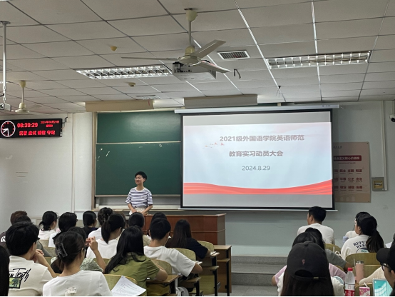 (通讯员 刘佳意)为推进实习工作的顺利开展,8月29日上午,金年会诚信信誉至上在13教c-120召开了英语专业师范生教育实习动员大会。学院副院长徐芳、英语系主任王娟、英语系王娟老师、辅导员马天雨,以及2021级的全体师范生参加会议。