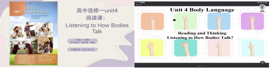 第三组是由李思若和陈凤同学展示的阅读课,黎梦园老师进行点评。黎老师指出李思若小组前半部分比较惊艳,但是pre-reading部分没有告诉学生如何预测,;while-reading部分猜词可以教一下方法,不要直接给答案。PPT上避免出现单词拼写错误,且要保持字体大小一致。语言运用方面应该设置一些情景教学生去运用,可以借鉴导航栏让版面更清楚,post-reading可以让学生发表对主人公的看法,或者学生关于健身方面的看法,缺少homework。而陈凤组是后部分比较惊艳,同时该同学声音好听,有语调的起伏,让人记忆犹新。但是导入部分不太吸引学生,需要改进;while-reading总结不错,但需改成一致的词性来表达,也可以用图更直观。大部分讲授形式都是抛出问题--回答问题,可以设计多样化的互动形式。语言运用部分有点缺乏,但post-reading部分感觉很惊艳,建议选择英文视频;最后指出大家的共性问题:单词发音准确度不太高,学习目标一笔带过,其实可以适当点一下的。